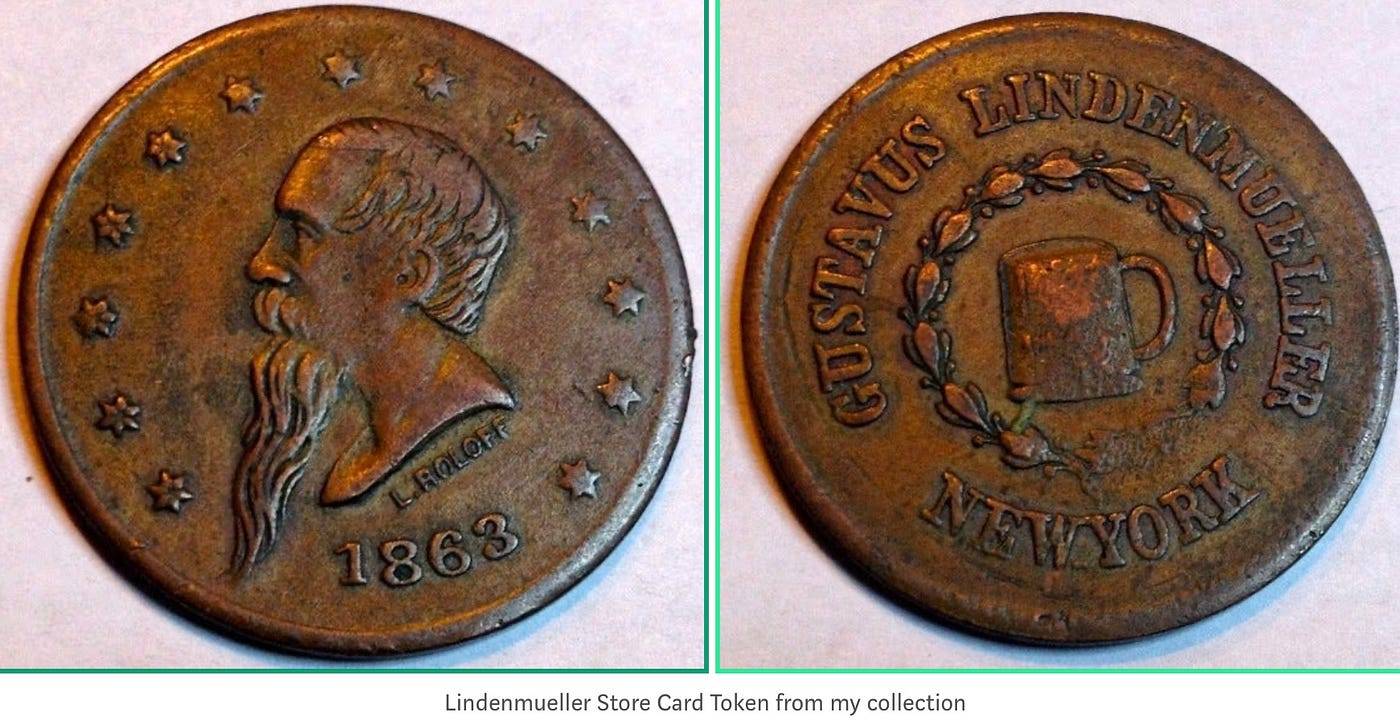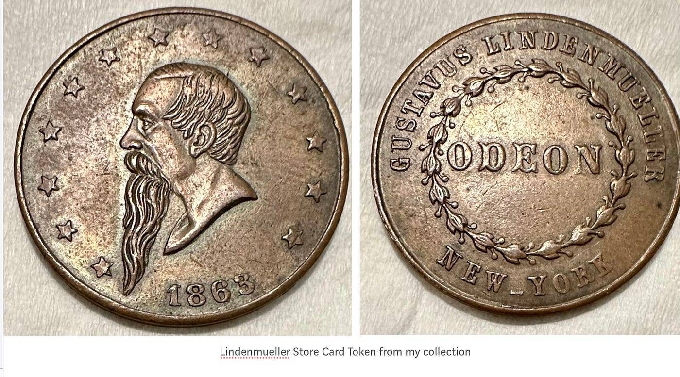 Lindenmueller Civil War Tokens — A Deeper Look Summary Lindenmueller Civil War tokens, issued by a New York bar owner, are often believed to be substitutes for one-cent coins during the Civil War. However, evidence suggests they were not intended as currency, but rather as tokens for admission to Lindenmueller’s theater, The Odeon, or for beer. The tokens’ larger size and unique design, along with the lack of any monetary claims, support this interpretation. A tiny piece of New York HistoryAnthony (Tony/Pcunix) Lawrence 👀 Many years ago I spotted the token shown above at a coin show. It’s a fairly common token, but I had not seen it previously. I thought it looked interesting, so I bought it. Curious to know more about it after bringing it home, I consulted “A Guide Book of United States Tokens and Medals” by Katherine Jaeger. It is listed there as NY-630AQ-1a but there was not much else to tell. Googling “NY-630AQ-1a” gave me more information, but I wasn’t truly convinced that it was accurate. The most common tale is what Wikipedia repeats: Lindenmueller owned a bar in New York and, because of hard money hoarding during the American Civil War, issued these one cent tokens as substitutes. There was nothing new about merchants issuing their own tokens for advertising purposes. Not was there anything new about replacing money with tokens. In the years that preceded and overlapped the depression that came with the Panic of 1837, hard money had been hoarded. Merchants had produced tokens that could be used as one cent coins, with an implied promise of redemption in the future. Lindenmueller was not the first to issue tokens. Cincinnati merchants began this in 1862, with H. A. Ratterman said to be the first to do so. Other than in Jaeger’s book, I cannot find an image of that particular 1862 issue. The obverse looks very much like the Indian Head cent of the same year. Lindenmueller’s token was different. Almost all tokens issued by merchants at that time were like Ratterman’s, the same size as the Indian Head Cent. The Lindenmueller token was larger, but smaller than the Large Cents that were produced until 1857. It was also larger than the Two Cent coin that would be introduced in 1864. It seemed unlikely that this was ever meant to pass as a one cent coin. As noted, many merchant tokens of that period had designs that mimicked the then current Indian Head Cent, but Lindenmueller’s token mimicked nothing. The small merchant tokens also often were quite blatant in their imitation, having wording like “NOT ONE CENT” on the reverse to imply value while skirting counterfeiting laws. The Lindenmueller token had either a beer mug or ODEON on the reverse. Nothing implied or promised monetary value. Lindenmueller had a theatre attached to his bar named The Odeon; it seemed not unreasonable to me that the ODEON version gave admission to the theatre, while the beer mug token might have bought you beer. Update December 2023: The Odeon tokens are harder to find and are smaller, about the size of a quarter. These are R-3, 500–2000 estimated. I recently found a nice one to add to my collection. I couldn’t find what a glass of beer there might have cost in 1863, but I did find this 1866 menu at the Library of Congress. It shows a price of 50 cents in Washington DC. Prices may have been higher there (it may have been an upscale restaurant), but probably not fifty times higher. My guess was that beer probably cost at least a nickel or so and that was the nominal value of this token. Next, we are told that these were used for streetcar fare. That may be, but again, did that cost one cent? Google didn’t help me, although I did find a reference to it costing a nickel in 1888 San Francisco. But that’s not what really bothered me about that part of the story. Wikipedia and other sources assert that the New York Third Avenue Railroad company eventually asked Lindenmueller to redeem the tokens. That seemed very unlikely to me. Why would a streetcar conductor accept it? Wikipedia goes on to claim that “Incidents such as these eventually forced the government to intervene.” I could not imagine why or how. These tokens didn’t look like coins, made no claim to be coins, so how could the government object to them? That the government cracked down on the smaller tokens with their comparable designs and devious mottos is obvious, but it seemed unlikely that this token would have been targeted. I went digging deeper and eventually found this article which supports my thoughts about this and then some. At “Gustavus Lindenmueller: The Myth, The Man, The Mystery”, the author provides more evidence than I was able to dig up: